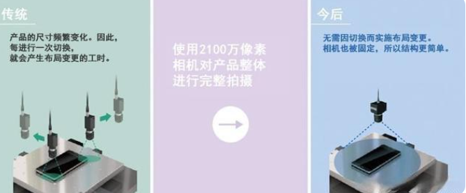 隨著智能手機(jī)、平板電腦等設(shè)備小型化的發(fā)展,電子設(shè)備行業(yè)對(duì)組裝精度的要求增高。支持實(shí)現(xiàn)同級(jí)超高像素?cái)?shù)的高分辨率大視野2100萬(wàn)像素彩色相機(jī),能夠清晰檢測(cè)芯片的細(xì)微部位,實(shí)現(xiàn)高精度的對(duì)準(zhǔn)。對(duì)于諸如電子部件這樣的細(xì)小部件,也能進(jìn)行正確組裝。