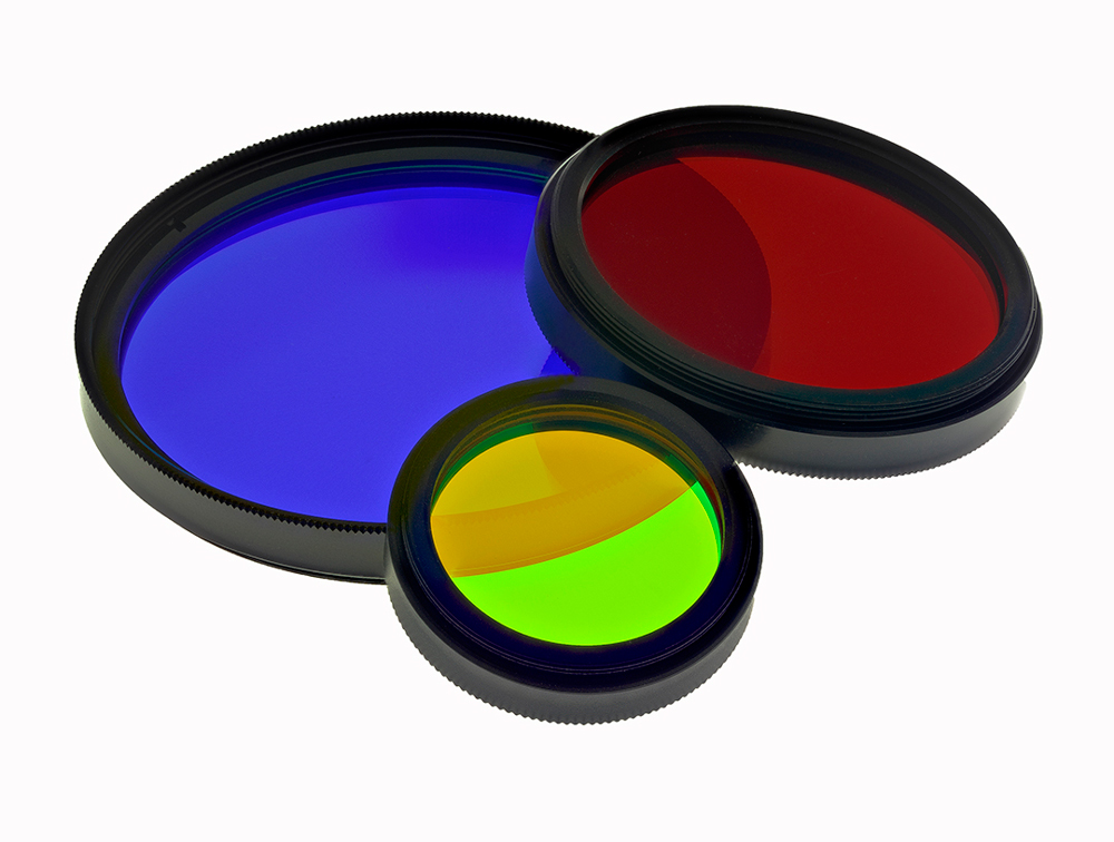 彩色基片濾光片采用基片制作而成,具有在整個特定光譜區(qū)域中與本質不同的吸收和透射特性。彩色基片濾光片通常用于作為長波通和帶通濾光片。與鍍膜濾光片相比,透射和阻斷之間的界限比較不尖銳。