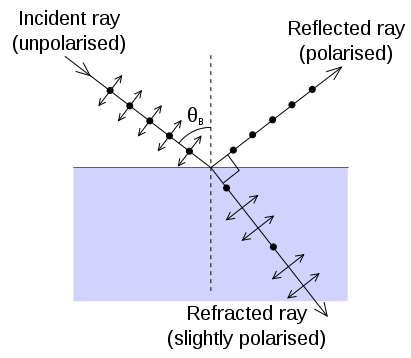 布儒斯特角,又稱偏振角(Brewster’s angle),是自然光經(jīng)電介質(zhì)界面反射后,反射光為線偏振光所應滿足的條件。首先由英國物理學家D.布儒斯特于1815 年發(fā)現(xiàn)。自然光在電介質(zhì)界面上反射和折射時,一般情況下反射光和折射光都是部分偏振光,只有當入射角為某特定角時反射光才是線偏振光,其振動方向與入射面垂直,此特定角稱為布儒斯特角或起偏角,用θb表示。此規(guī)律稱為布儒斯特定律。光以布儒斯特角入射時,反射光與折射光互相垂直。