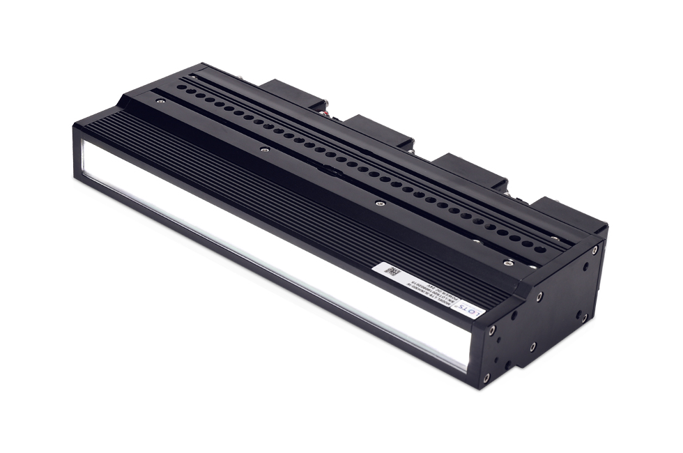 線光源:線光源有兩種照射方式,分別為單條線光與雙條線光對射。通常我們采用單條照射,如果產品有邊有高度差(單條會有陰影影響),或者均勻性需要加強可以考慮雙條線光對射。線光源比較靈活可以擺放任意角度,可明、暗場照射。光路非常聚集方向性強。