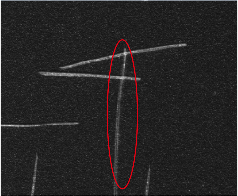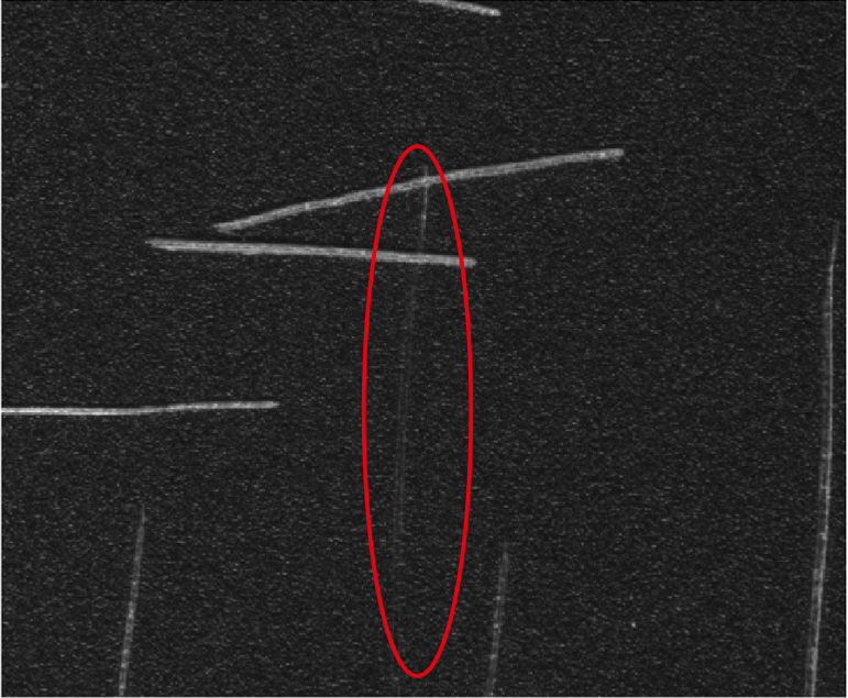 ★與常規(guī)線光效果對(duì)比。在線掃描相機(jī)下凸出豎方向劃痕類缺陷。