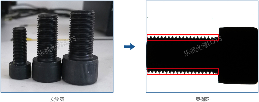 3、螺紋檢測,采用平行背光源,使邊緣更銳利,減少螺紋邊緣虛影,影響檢測精度的情況,對比效果好。