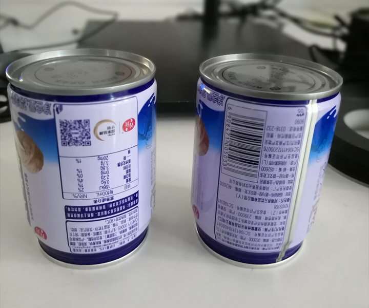3、食品罐頭底部生產(chǎn)日期檢測,產(chǎn)品表面凹凸光滑曲面。使用環(huán)形光源組合打光把底面整體打白,字符為黑,對比明顯。