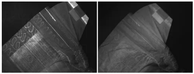 UV熒光圖像在很多應(yīng)用中都可以使用到,反射UV圖像-沒有熒光-也可以呈現(xiàn)物體的瑕疵。這里,使用反射UV光獲取圖像,用來檢測(cè)空氣袋上的產(chǎn)品標(biāo)簽,增強(qiáng)了對(duì)比度。