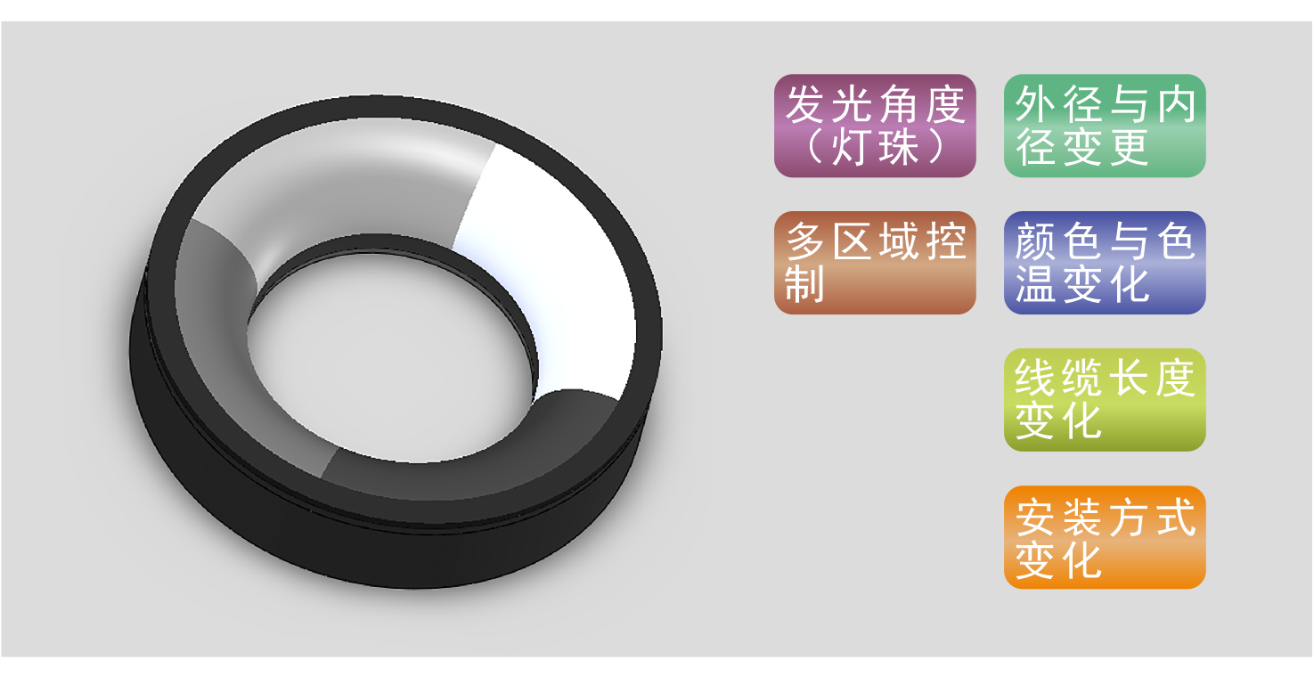 將光源分成多個(gè)區(qū)域,使每個(gè)區(qū)域可以獨(dú)立點(diǎn)亮。為機(jī)器視覺(jué)系統(tǒng)提供更