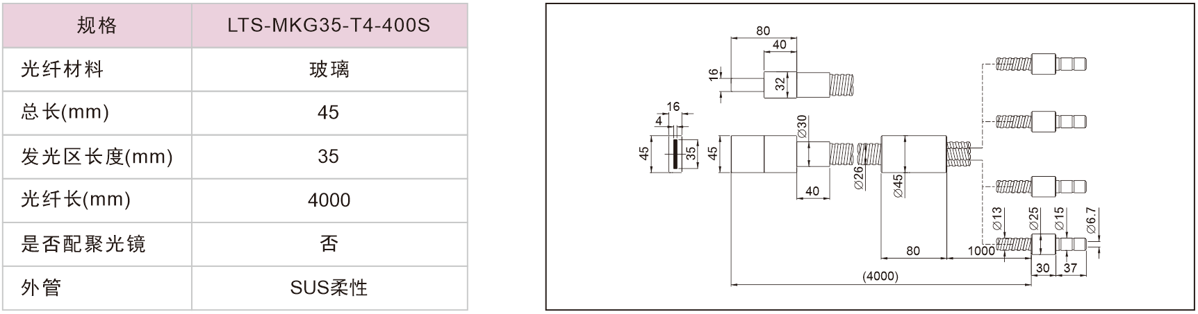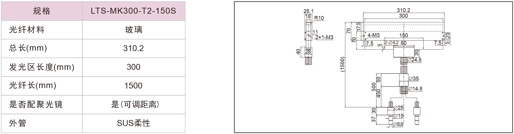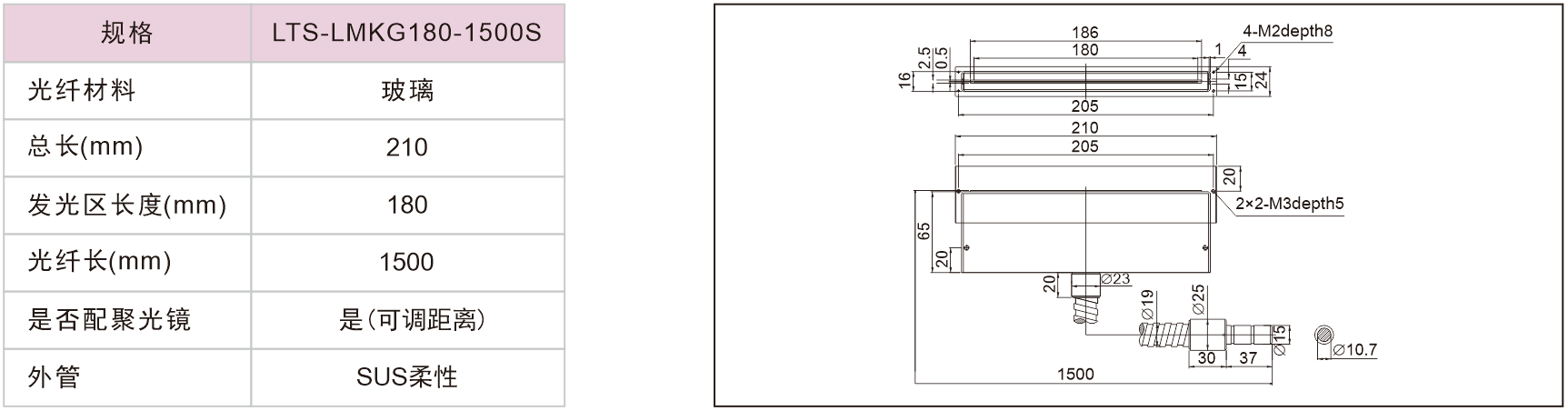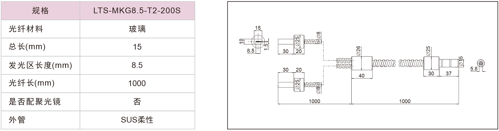 線型光纖(無(wú)聚光鏡)