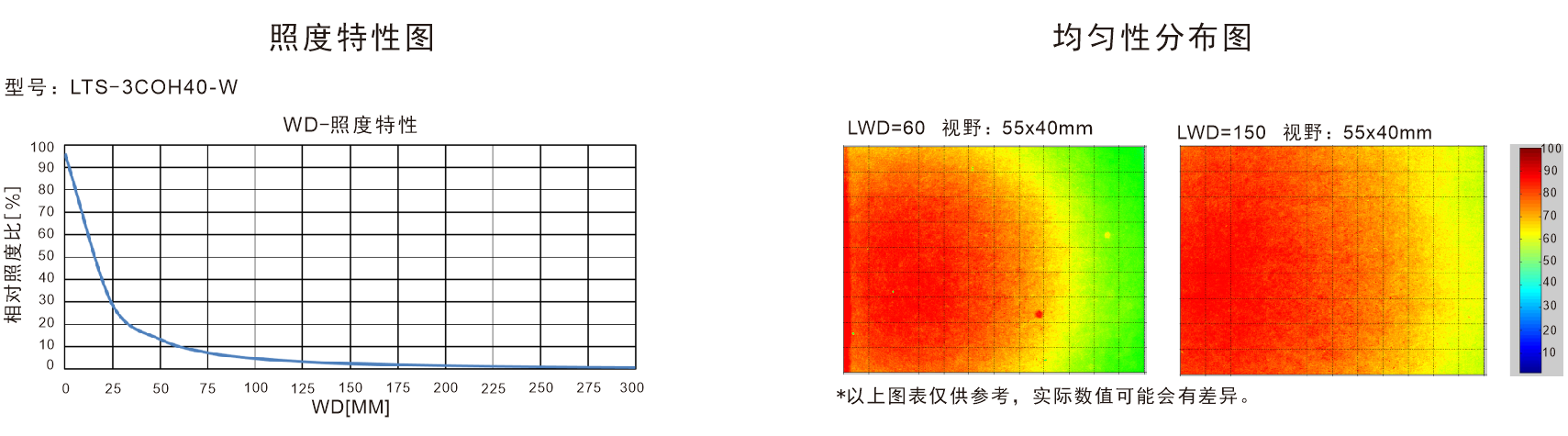 * 發(fā)光峰值波長/相關色溫:紅色:620-630nm,綠色:525-530nm,藍色:465-470nm,白色:6600K(色溫) |