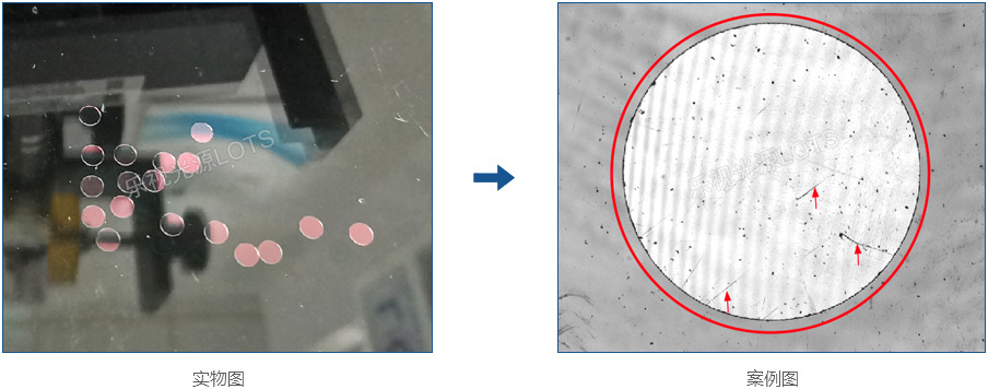 產(chǎn)品需檢測透鏡厚度,考慮側(cè)面打光,因產(chǎn)品反光高。所以用能消除炫光的平行背光,成像對(duì)比度好。