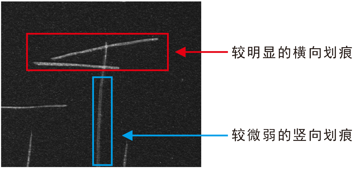在機(jī)器視覺檢測中,線掃應(yīng)用大大提高了視覺檢測的精度,應(yīng)對大尺寸產(chǎn)品更具優(yōu)勢,其中線光源是最常用的光源之一。視覺檢測中均勻性和對比度是滿足檢測需求的必要條件,線掃光源一般增加長度就能達(dá)到更好的均勻性,而對比度就需要根據(jù)產(chǎn)品的特性來調(diào)整光源位置和光照方向使特征凸顯。劃痕類缺陷在檢測中是比較常見的,一般使光照方向與劃痕方向互相垂直就能得到較好效果;而與光照方向平行的劃痕則是不明顯的。線掃光源一般是對著運(yùn)動方向照射,這種情況下,劃痕類缺陷有些方向就不是特別明顯。