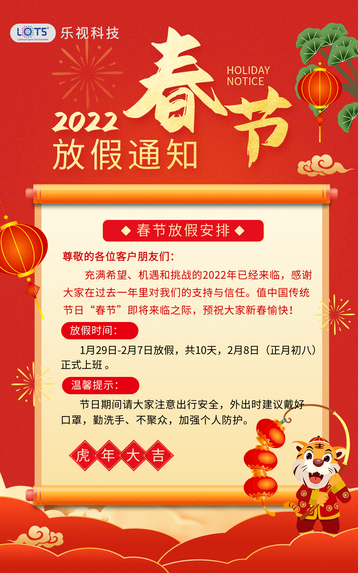 樂視科技 2022 春節(jié)放假通知