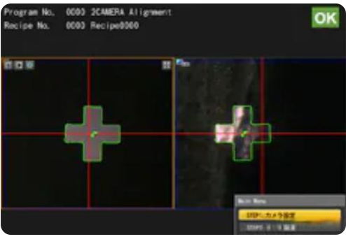 在通過坐標(biāo)進(jìn)行的位置控制中,存在工件與工作臺(tái)間偏移、檢測(cè)精度等問題,難以實(shí)現(xiàn)理想的位置、角度檢測(cè)。近年來,隨著圖形搜索(搜索處理)技術(shù)的進(jìn)步,自動(dòng)校正的精度實(shí)現(xiàn)了飛躍性的提升。自動(dòng)進(jìn)行高速、高精度校正成為了可能,實(shí)現(xiàn)了生產(chǎn)效率提升。