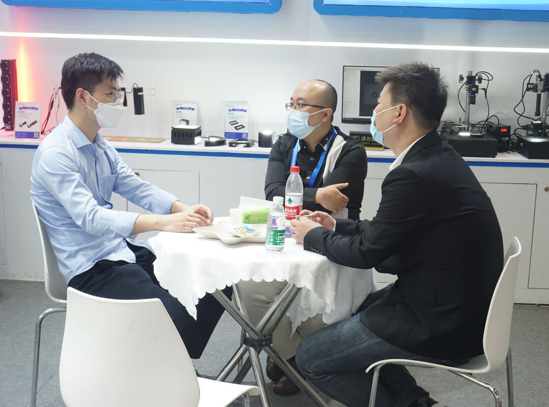 產(chǎn)品展示區(qū)有:光纖光源、線掃光源、點(diǎn)光集光源、結(jié)構(gòu)光源以及各種類定制新品。