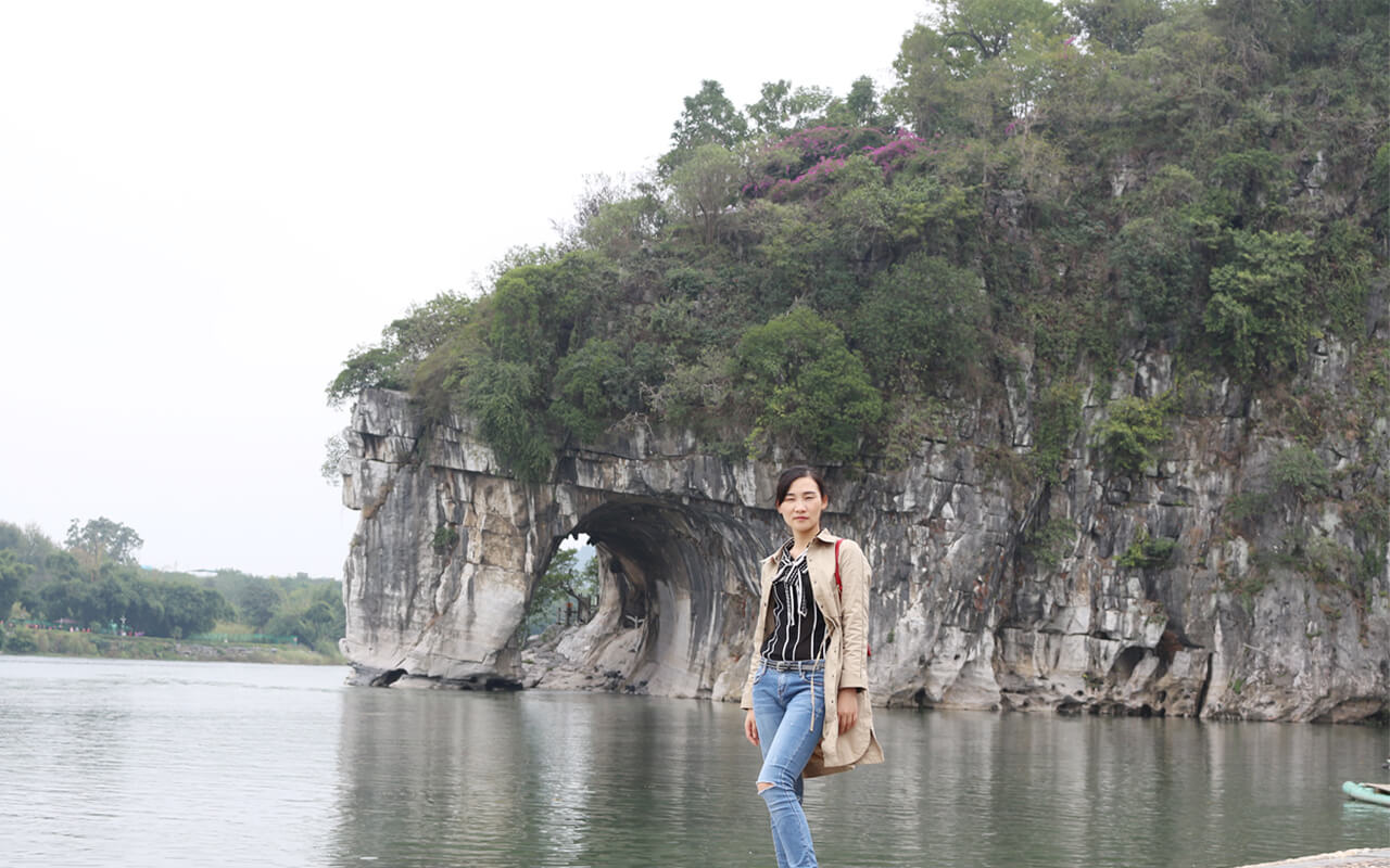 奇特的山,清澈的水,這里的山千奇百怪,姿態(tài)各異。桂林的山,三分看形象,七分靠想象。象鼻山地處漓江邊,從遠(yuǎn)處看,就象一只活生生的大象在河邊飲水。只見它把長長的鼻子伸進(jìn)清澈見底的漓江水里,各種自然景觀讓人嘆為觀止,每位同事都像打了雞血一般,激情洋溢。一天游玩下來,累并快樂著。