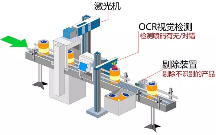 2、產(chǎn)品打碼后,通過視覺傳感器觸發(fā)機(jī)器拍照,所得標(biāo)簽圖片傳入系統(tǒng),系統(tǒng)對圖片進(jìn)行提取分析比較,判斷產(chǎn)品是否存在漏打碼,并核對生產(chǎn)批號(hào)等信息是否存在錯(cuò)漏。