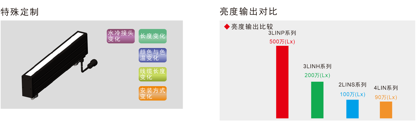 * 最長(zhǎng)可定制3米。紫外和紅外光源可根據(jù)客戶要求定制。 * 發(fā)光峰值波長(zhǎng)/相關(guān)色溫:紅色:620-630nm,綠色:525-530nm,藍(lán)色:465-470nm,白色:6600K(色溫) |