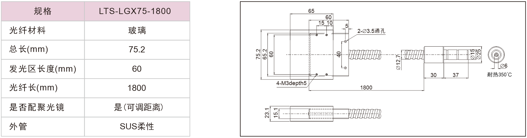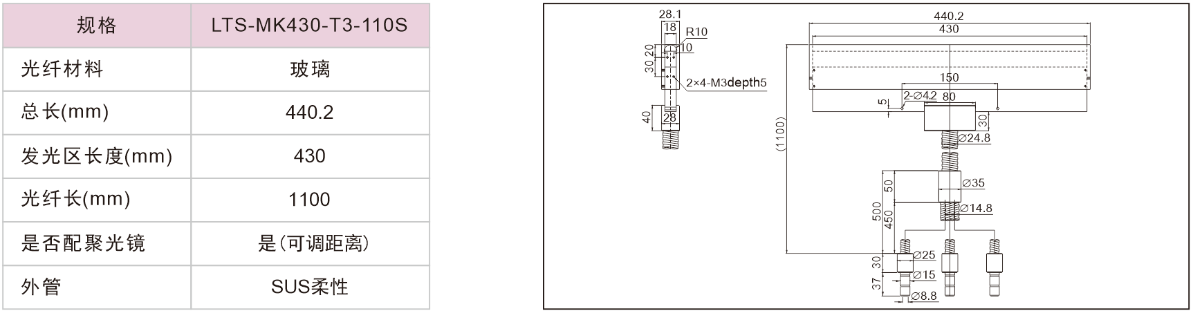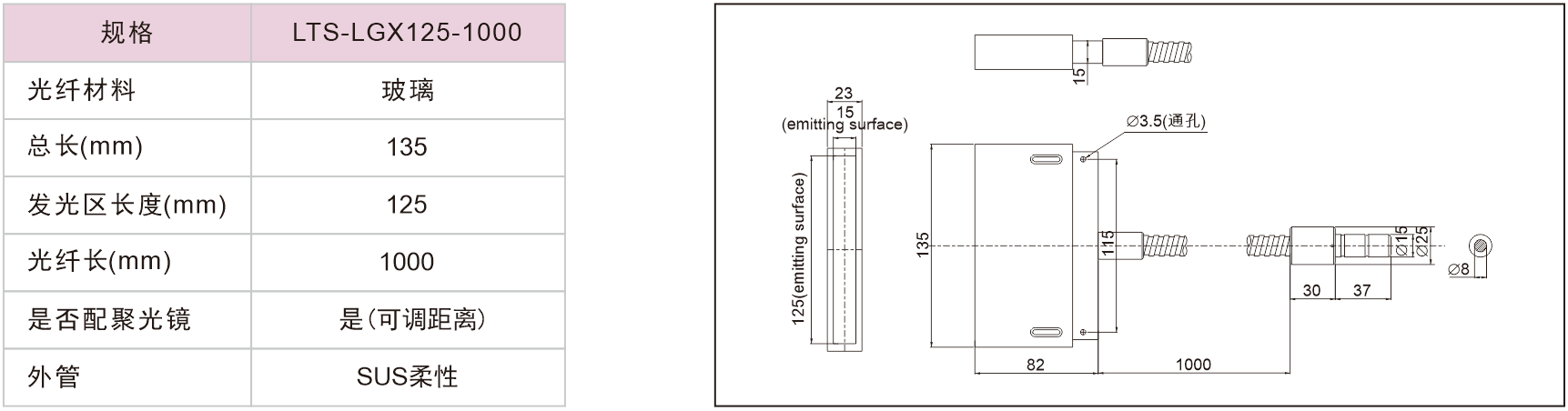 線型光纖(無(wú)聚光鏡)