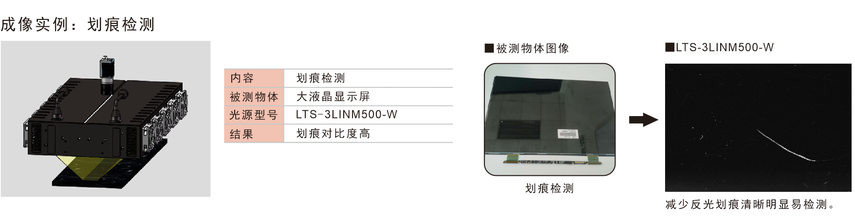 以上是多角度線光與隧道線光源的對(duì)比效果圖。多角度檢測(cè)劃痕,多個(gè)方向光路指向性強(qiáng),對(duì)比劃痕特征與背景會(huì)更加的明顯;而隧道線光源由于均勻性非常好,導(dǎo)致缺陷特征被均勻化,呈現(xiàn)劃痕與背景對(duì)比相對(duì)比較低。