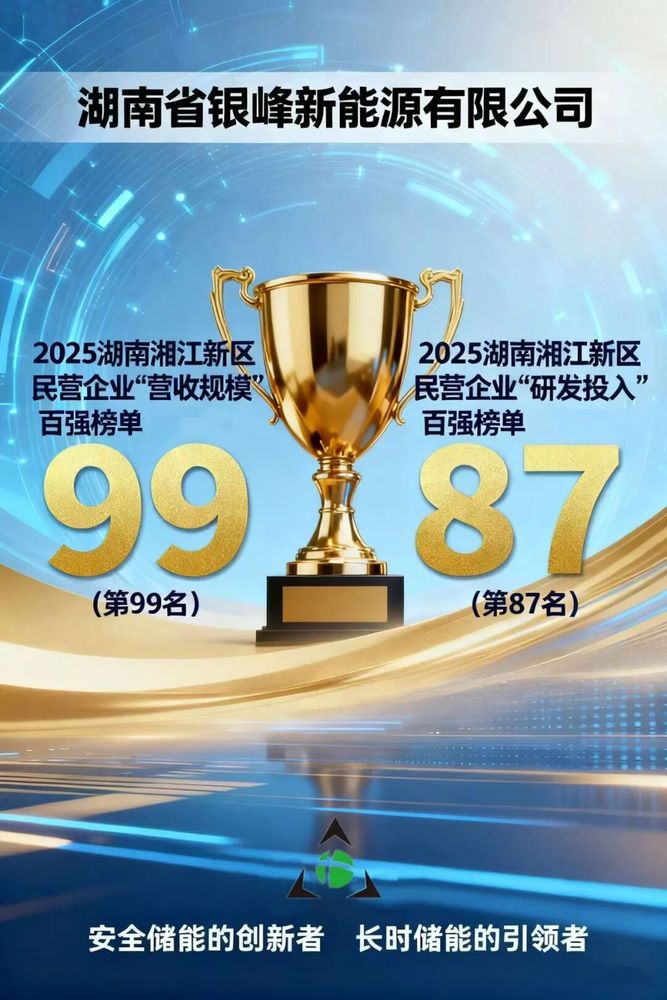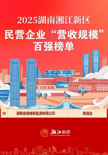 銀峰新能源入選湘江新區民營企業雙百強榜單發表時間:2025-11-03 15:22 入選2025湖南湘江新區民營企業 “營收規模”、“研發投入”百強榜單 近日,湖南湘江新區正式發布2025年度民營企業“四類百強”榜單。湖南省銀峰新能源有限公司成功入選“營收規模百強榜單”第99名及“研發投入百強榜單”第87名。 作為扎根湖南湘江新區的***高新技術企業,銀峰新能源始終將技術創新作為企業發展的核心驅動力。此次同時躋身“營收規模”與“研發投入”雙項百強榜單,不僅是新區對公司綜合實力與成長潛力的高度認可,也是銀峰新能源長期以來堅持技術領先、專注創新發展的直接體現。 未來,銀峰新能源將繼續依托湖南湘江新區優質的營商環境與產業生態,進一步擴大產能布局,拓展市場空間,強化科技賦能,積極履行社會責任,為實現國家綠色低碳發展目標貢獻更多“銀峰力量”。